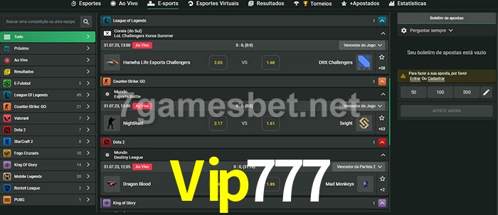 A aposta Vip777 oferece aos jogadores a experiência mais conveniente de apostas em eSports!